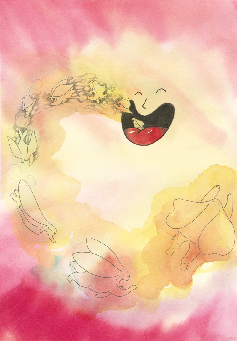 Pour 2026, nous vous emménerons au pays des Rires, avec un texte de Justine Arnal et les joyeux dessins de Marie-Aurore Conscience. Vous y découvrirez la vie surprenante de ces petits êtres aux grandes oreilles, tapis au fond de nos gorges, toujours prêts à jaillir quand l’occasion se présente.